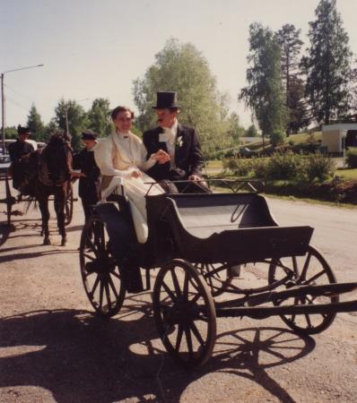 Margareta Nordqvist och Peter Ahren som Aino och Jean Sibelius vid 100-årsjubileet av Sibelius bröllop 10.6.1992.