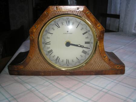 Bordsklockan gjorde Axel Damsten på beställning till Valter Audas i mitten av 1940-talet.