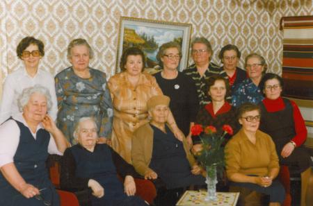 Sittande fr v Ellen Nordling, Alvina Södergård, Lovisa Stagnäs, Alma Stagnäs, Astrid Stenkull, Tekla Furunäs. Stående fr v Alice Södergård, Signe Berglund, Helga Kullman, Berta Påfs, Ester Östman, Anna Klemets, Ida Ekman.