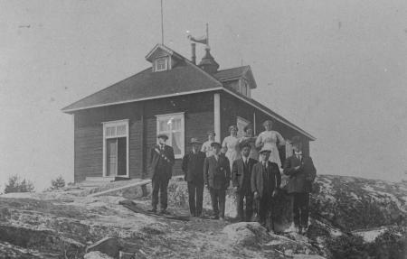 Övre raden fr v Maria Björk, Ida Backman, M Sjövik och Fia Backlund (Beijar). Nedre raden fr v Michel Kullman, Oskar Öling, Alfred Södergård, August Backlund, Johannes Skarper och Viktor Sjövik.