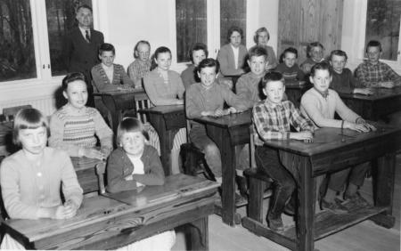 Fjärde raden: Bror-Einar Furunäs, Ingmar Stagnäs, Benita Furunäs, Else-Maj Kull. Lärare Robert Holm. Berndt Nordling saknas på bilden.