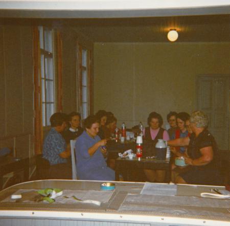 Medborgarinstitutets sykurs i Kerklax ungdomslokal ca 1977. Lärare Benita Lähdes (f. Furunäs),