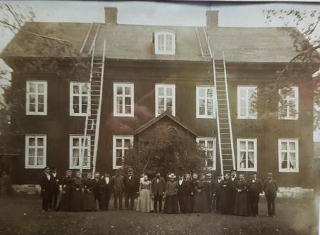 En midsommarbild från herrgården, 1910-1920. Av bilden kan vi ana orsaken till den stora förbrukningen av livsmedel, antalet besökare var tidvis stort. Bilden finns också i SLS's arkiv. Foto E Hägglund OTA 135 foto 46511.