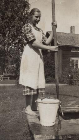 Fanny Nyman vid brunnen på Tottesund