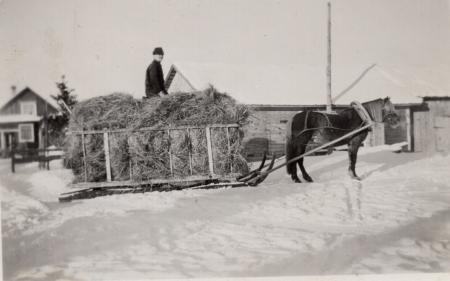 Erik Heir med häst och höskrinda