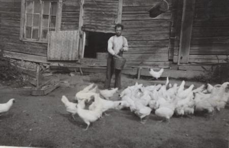 Boställets höns sköttes av Edvin från Petsmo. Edvin kom en dag till bostället och frågade efter arbete. För att pröva hans duglighet skickades han att dika ut ett vått ställe som kallades ”Vadun”. Deet sägs att han slet så ”lejri va i luftin heila tidin”. Arbetet blev hans. Han hjälpte kvinnorna i fähuset och bar ut dynda och skötte hönsen och diverse annat. Varma årstiden som han i lastbilslidret på bilens flak. På morgonen kom han i och åt gröt tillsammans med de andra. Han var en omtyckt person. Edvin stickade sockor på beställning och deltog också i kvinnornas handarbetsträffar. När arrendetiden var över på bostället flyttade han tillbaka till Petsmo.
